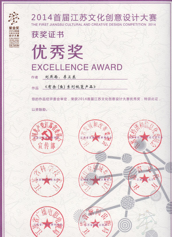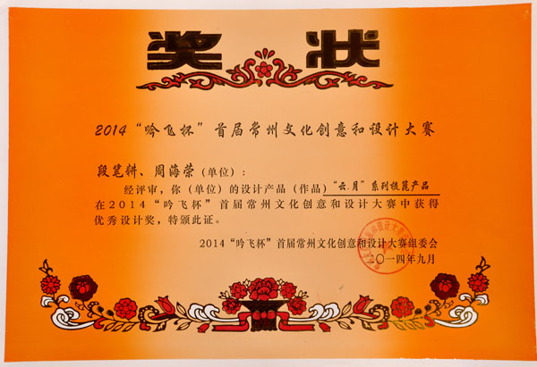 公司榮譽(yù)介紹: “2009年常州市旅游商品創(chuàng)新設(shè)計(jì)大賽”,“覽盡千荷”綠檀雕刻梳榮獲三等獎(jiǎng); “2011年常州市旅游商品創(chuàng)新設(shè)計(jì)大賽”,“彩印工藝梳-我們的年代(80)”榮獲二等獎(jiǎng)。 “2011年中國包裝創(chuàng)意設(shè)計(jì)大賽“,虞美人彩印梳篦系列包裝獲得一等獎(jiǎng); “2011年中國包裝創(chuàng)意設(shè)計(jì)大賽”,虞美人筷子系列包裝獲得三等獎(jiǎng); “2011創(chuàng)意中國.第五屆設(shè)計(jì)藝術(shù)大獎(jiǎng)賽”,虞美人系列包裝獲得三等獎(jiǎng); “2011首屆中國(無錫)國際文化藝術(shù)博覽會(huì)”,漆藝對(duì)梳《喜玫瑰》獲得“藝博杯“銅獎(jiǎng)。 “第十三屆中國工藝美術(shù)大師作品暨國際藝術(shù)精品博覽會(huì)”, 漆藝梳《報(bào)喜鳥》榮獲2012“儒士儒家•百花杯”中國工藝美術(shù)精品獎(jiǎng)優(yōu)秀獎(jiǎng) “第十三屆中國工藝美術(shù)大師作品暨國際藝術(shù)精品博覽會(huì)”, 虞美人《渾然天成》榮獲2012“儒士儒家•百花杯”中國工藝美術(shù)精品獎(jiǎng)金獎(jiǎng) “2012江蘇省工藝美術(shù)精品大獎(jiǎng)賽”,虞美人《S型梳》喜獲“藝博杯”銀獎(jiǎng) “第十四屆中國工藝美術(shù)大師作品暨國際藝術(shù)精品博覽會(huì)”, 虞美人工藝梳《新型十二星座梳》榮獲2013“國信•百花杯”中國工藝美術(shù)精品獎(jiǎng)優(yōu)秀獎(jiǎng) “2013【藝博杯】江蘇省工藝美術(shù)精品大獎(jiǎng)賽”,虞美人《萬事如意系列》喜獲“藝博杯”銀獎(jiǎng) “2013江蘇省工藝美術(shù)新人新作成果展作品大獎(jiǎng)賽”,虞美人《壺(福)的藝術(shù)》喜獲“藝博杯”入圍獎(jiǎng) 2013年度江蘇省“蘇商領(lǐng)袖峰會(huì)”,常州市卓尚飾品有限公司榮獲最具成長性企業(yè)獎(jiǎng) 常州市卓尚飾品(虞美人)有限公司總經(jīng)理李衛(wèi)東榮獲“常州創(chuàng)意產(chǎn)業(yè)協(xié)會(huì)2013年底慈善獎(jiǎng)榮譽(yù)” 常州市卓尚飾品有限公司榮獲薛家鎮(zhèn)人民政府2013年度“創(chuàng)新創(chuàng)優(yōu)”獎(jiǎng) 常州市卓尚飾品有限公司榮獲薛家鎮(zhèn)人民政府2013年度“銷售業(yè)績”獎(jiǎng) 2014中國(深圳)國際文化產(chǎn)業(yè)博覽交易會(huì),劉燕西、李衛(wèi)東、段筆耕<十二星座系列>獲得“中國工藝美術(shù)文化創(chuàng)意獎(jiǎng)”銀獎(jiǎng) 2014中國(深圳)國際文化產(chǎn)業(yè)博覽交易會(huì),徐德鴻、李衛(wèi)東、段筆耕《漆彩人生系列》獲得“中國工藝美術(shù)文化創(chuàng)意獎(jiǎng)”銅獎(jiǎng) 文化創(chuàng)意大獎(jiǎng)賽“紫金獎(jiǎng)” ,有余(魚)系列梳篦產(chǎn)品獲得了優(yōu)秀獎(jiǎng) 2014吟飛杯首屆常州文化創(chuàng)意和設(shè)計(jì)大賽,虞美人有余(魚)系列梳篦產(chǎn)品榮獲優(yōu)秀設(shè)計(jì)獎(jiǎng) 2014吟飛杯首屆常州文化創(chuàng)意和設(shè)計(jì)大賽,虞美人“云,月”系列梳篦產(chǎn)品榮獲優(yōu)秀設(shè)計(jì)獎(jiǎng) 2014藝博杯江蘇省工藝美術(shù)精品大獎(jiǎng)賽,虞美人《梳篦:酒醉的探戈》喜獲銀獎(jiǎng) 2014“中國原創(chuàng)•百花杯”中國工藝美術(shù)精品大獎(jiǎng)賽,虞美人《梳篦-江南風(fēng)韻系列》喜獲銀獎(jiǎng) 常州市卓尚飾品有限公司獲“2014年常州市電子商務(wù)協(xié)會(huì)2014年度優(yōu)秀會(huì)員單位” 2014“虞美人”成為常州市知名商標(biāo)。
