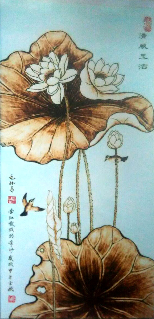 毛懷青,江蘇常州市武進(jìn)人。 中國(guó)工藝美術(shù)學(xué)會(huì)會(huì)員,常州市中國(guó)烙畫研究會(huì)副會(huì)長(zhǎng),常州市文博鑒賞協(xié)會(huì)理事,非物質(zhì)文化遺產(chǎn)烙畫傳承人。高級(jí)工藝美術(shù)師。 年輕時(shí)學(xué)習(xí)國(guó)畫、油畫中年蔓現(xiàn)掌州咯畫源遠(yuǎn)流長(zhǎng)、歷史悠久,有著其它美術(shù)門類不具備的藝術(shù)風(fēng)格與特色。可謂是工藝美術(shù)中的一朵十分亮麗的藝術(shù)奇葩,是我民族先人給我們留下的一份不可多得十分珍貴的一份文化遺產(chǎn)。為弘揚(yáng)與發(fā)展這份優(yōu)秀文化遺產(chǎn),我從此下定決心研究烙畫,愿付出一份力量為振興烙畫事業(yè)做出貢獻(xiàn)。至今已潛心研究幾十年,取得了可喜的成績(jī),被業(yè)界公認(rèn),社會(huì)關(guān)注與認(rèn)可。有“江南烙畫第一筆”之美譽(yù)。 近年來,創(chuàng)作的烙畫作品分別獲得過全國(guó)、省市級(jí)的金、銀、銅獎(jiǎng)多次。中央電視臺(tái)曾兩次播放過本人的烙畫作品,江蘇電視臺(tái)、常州電視臺(tái)也曾多次播放過本人的作品與烙畫藝術(shù)生涯,揚(yáng)子晚報(bào)、常州日?qǐng)?bào)、常州晚報(bào)也曾多次報(bào)導(dǎo)過本人的烙畫作品,出版物有三種版本都能查閱到介紹本的烙畫從藝生涯與藝術(shù)業(yè)績(jī)。