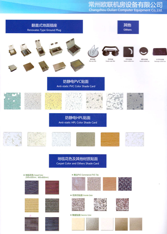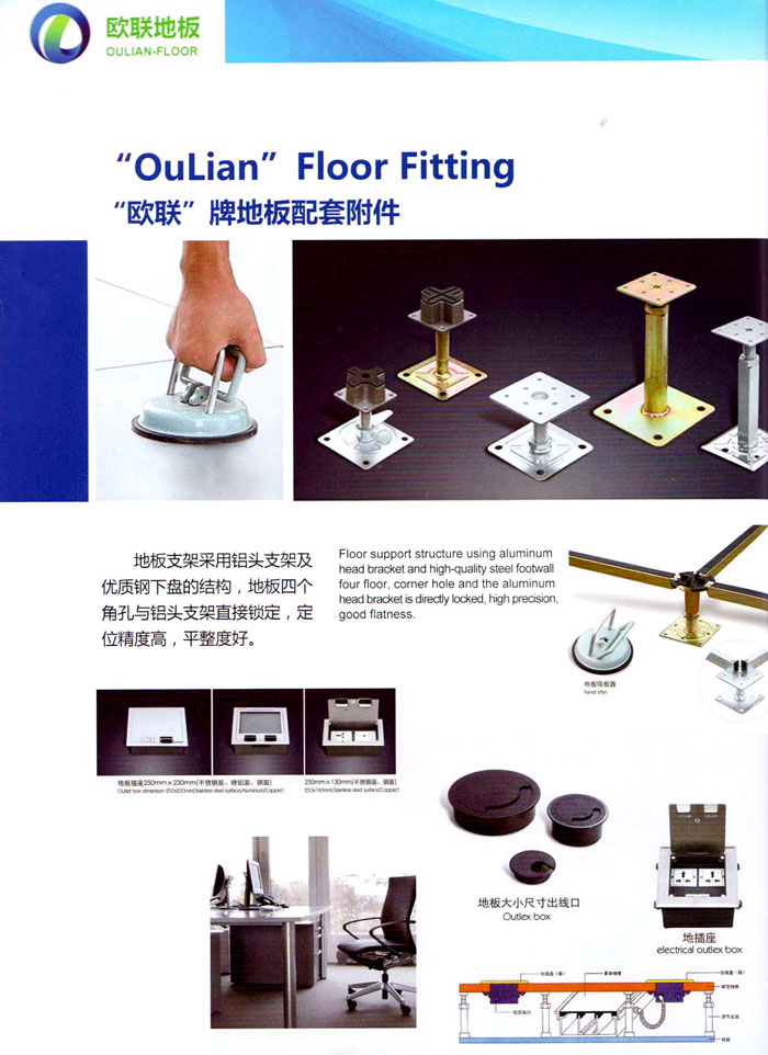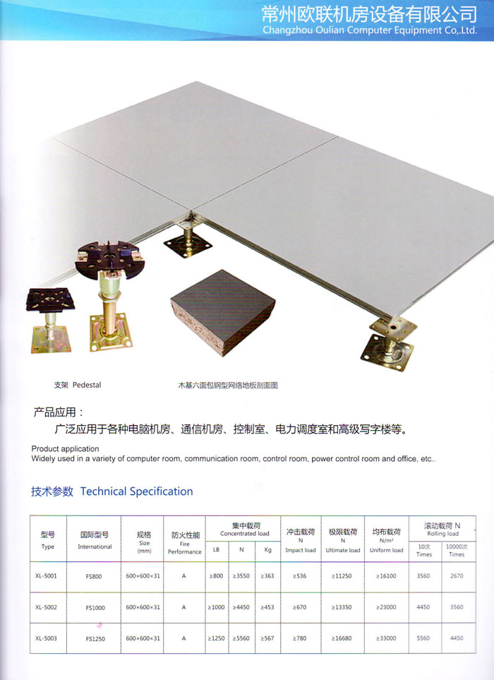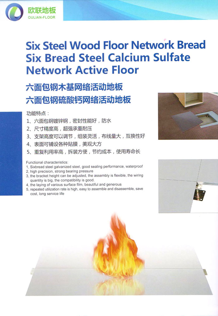 “歐聯(lián)”系列全鋼地板,符合國(guó)家安全要求,種類完備多樣,其中防靜電陶瓷地板、硫酸鈣地板等除具有普通瓷質(zhì)的裝飾和實(shí)用性外,其耐磨、防水、防火功能優(yōu)于其它同類產(chǎn)品,防靜電系列地板,能切合不同客戶的要求,其靈活的配置,深受客戶歡迎,不同材質(zhì)的地板結(jié)構(gòu)使設(shè)計(jì)師的設(shè)計(jì)空間比傳統(tǒng)的更加廣闊自由和善變。