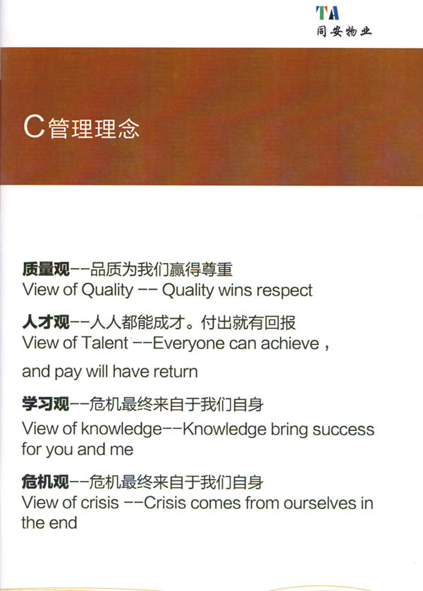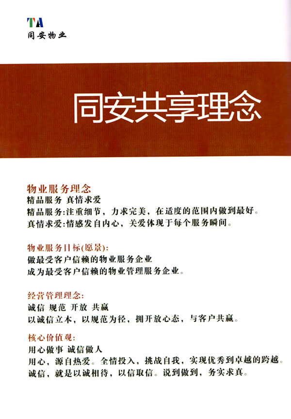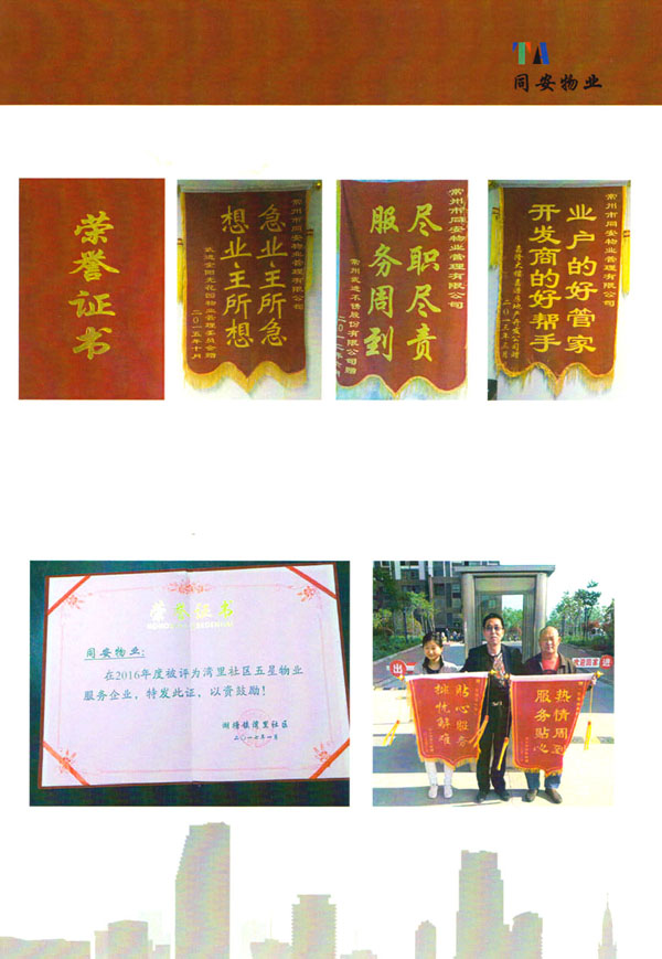 常州市同安物業(yè)管理有限公司注冊(cè)1999年,發(fā)展至今已有多年歷史,本公司坐落于美麗的龍城常州,秉承“融聚無(wú)限未來(lái)”的核心理念,融專業(yè)認(rèn)才,匯優(yōu)質(zhì)資源以”專心,細(xì)心,耐心”的服務(wù)態(tài)度,為客戶打造“安心,順心,稱心”的服務(wù)感受。 公司始終以“打造中國(guó)最值得信賴和最值得尊重的物業(yè)管理服務(wù)集成商”為愿景自我鞭策,不斷前行。同安物業(yè)以客戶滿意為終極目標(biāo),不斷加強(qiáng)”崗位資格認(rèn)證能力,人才招聘與職業(yè)化培訓(xùn)能力,產(chǎn)品策劃與管理設(shè)計(jì)能力,品質(zhì)監(jiān)督與管控能力,技術(shù)更新與運(yùn)營(yíng)優(yōu)化力“五大專業(yè)能力的培養(yǎng)和提升,實(shí)現(xiàn)“精品化管理,專業(yè)化服務(wù)”。 公司發(fā)展至今,員工總數(shù)近千余人,大專以上學(xué)歷200多人,中高級(jí)技術(shù)人員160人,維修人員140人,物業(yè)管理師80名,公司接管面積達(dá)3100000多平方米,設(shè)涉及住宅小區(qū),別墅,大型游樂(lè)場(chǎng),公園,醫(yī)院,廠區(qū),商業(yè)等。公司的工作管理逐步導(dǎo)入ISO9001質(zhì)量體系和ISO4001環(huán)境管理體系和GB/T28001職業(yè)健康安全管理體系,嚴(yán)格按照質(zhì)量體系的標(biāo)準(zhǔn)執(zhí)行。