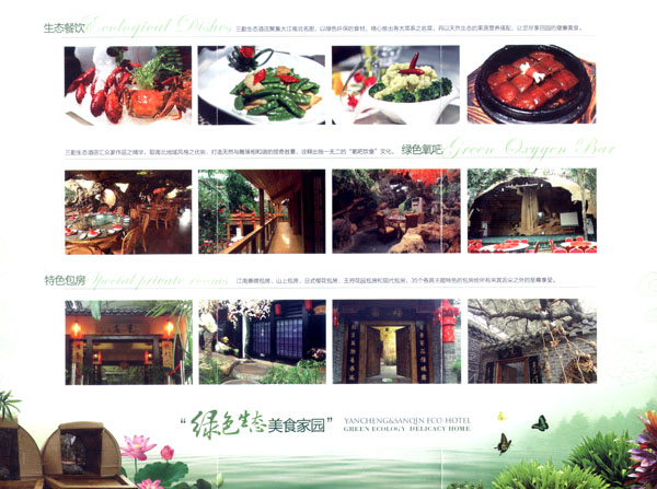 淹城花都溫泉水城孕育天地之精華,悅身、悅?cè)荨傂、悅神。置身其中泉水潺潺,霧氣繚繞、花瓣飄香,恍若仙境。“掬水月在手,弄花香滿衣”,花都溫泉的浪漫與溫潤在這里完美展現(xiàn)。 花都溫泉水城包括洗浴區(qū)、戲水世界、露天溫泉、自助餐廳、生態(tài)房、別墅區(qū)、紅文化房、VIP區(qū)等多種功能區(qū)域,是集溫泉養(yǎng)生、休閑住宿、演藝會務(wù)為—體的休閑度假勝地,給賓客帶來江南小鎮(zhèn)的浪漫水城之旅。 古木新枝畔賓客對酒當(dāng)歌,溪泉石椅旁把茶品啜。 淹城-三勤生態(tài)酒店,這里是一處綠色生態(tài)的美食家園。此地鬼斧神工.奇水異石,和風(fēng)細(xì)雨林中穿過,引百鳥朝來暮歌;這里集生態(tài)餐飲、演藝、中小型會務(wù)為一體,將現(xiàn)代裝飾風(fēng)格和古雅拙樸的自然裝修完美整合;這里聚集大江南北名廚,推出精致綠色美昧佳肴。來到這里,賓客可享田園至美之景,品舌尖至鮮之味,實乃人生一大樂事。