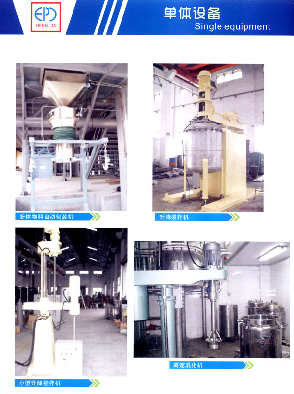 恒大公司掌握膠粘劑、樹(shù)脂、涂料和油墨等精細(xì)化工核心工藝技術(shù),擁有強(qiáng)大的化工成套生產(chǎn)設(shè)備提供能力和設(shè)備制造能力,能夠?yàn)榭蛻籼峁⿵恼麖S規(guī)劃設(shè)計(jì)、生產(chǎn)工藝流程設(shè)計(jì)、設(shè)備選型制造、管道設(shè)計(jì)安裝、自動(dòng)化控制系統(tǒng)開(kāi)發(fā)調(diào)試以及整廠總承包交鑰匙工程服務(wù)。